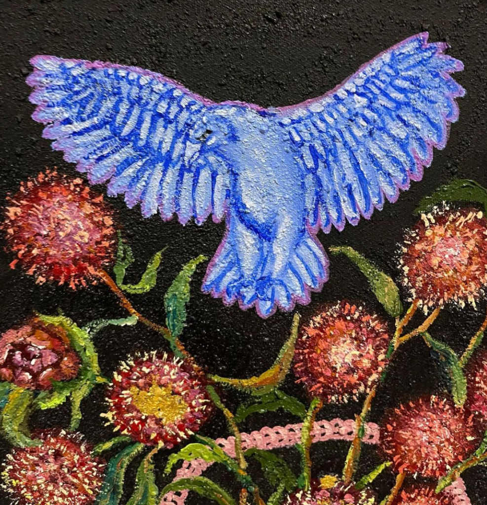 Whether it’s her depiction of Blue Bundjil – the symbol of love and protection, or her still-life pieces – evoking ultimate calm and offering a chance for contemplation, the role which her art plays in injecting spirit within her surrounding community, and enriching our knowledge of the past, present and future, is invaluable.