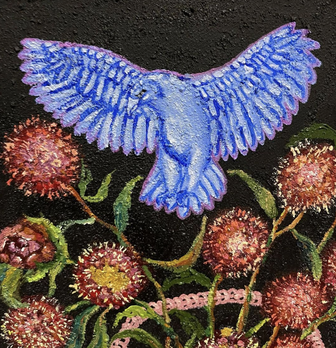 Whether it’s her depiction of Blue Bundjil – the symbol of love and protection, or her still-life pieces – evoking ultimate calm and offering a chance for contemplation, the role which her art plays in injecting spirit within her surrounding community, and enriching our knowledge of the past, present and future, is invaluable.