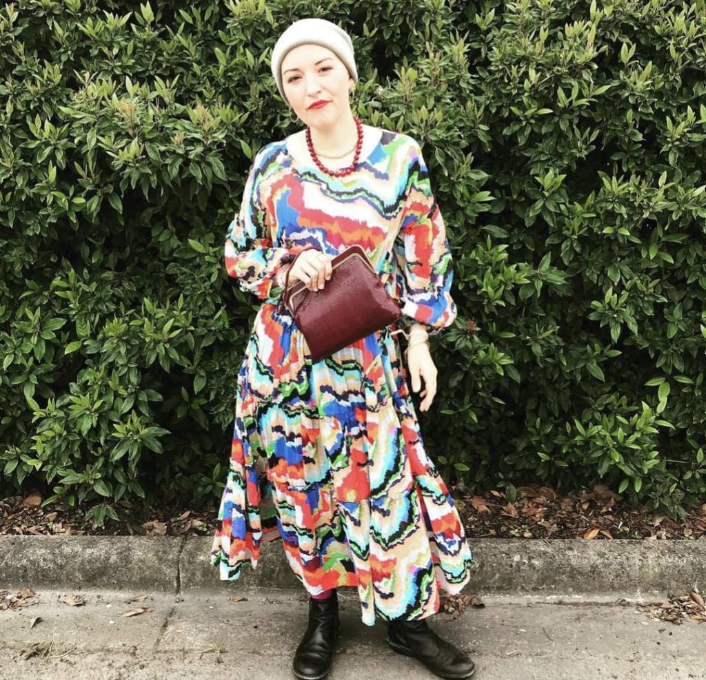 Undergoing intense chemotherapy for several months, Danielle chose to make the best out of a dire situation. “For each chemo session I would dress up in a fancy costume, with loud make-up and jewellery, and my husband would take my photo outside the hospital,” she says. “I was so scared of the chemo treatments (the first drug of the treatment was called the ‘red death’) that I didn’t want to just turn up in sweatpants with large under-eye bags and my teeth chattering away. I wanted armour. I wanted to show up with intention.